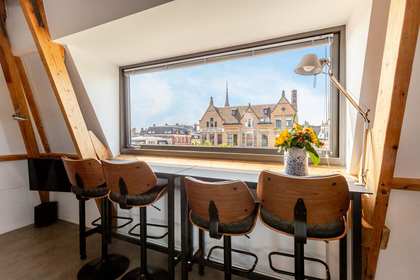 Through the hallway, we access the living room, modern toilet, and bedroom. The living room is located at the front and has a great size. The open kitchen is stylish and modern, fully equipped with built-in appliances, such as an oven, fridge-freezer, induction cooktop with a built-in extractor, and a dishwasher. The large windows provide a pleasant view at Haarlem city center.