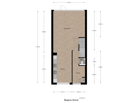 - 47 m² (9,30 meter diep en 5,00 meter breed)