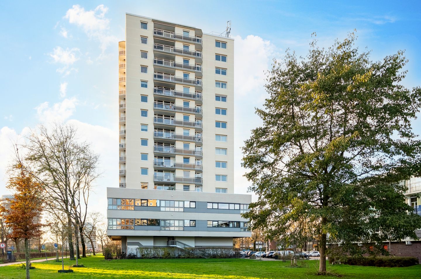 - Built around 1970 on a concrete pile foundation; the central section, originally office space, was fully redeveloped into apartments in 2017
