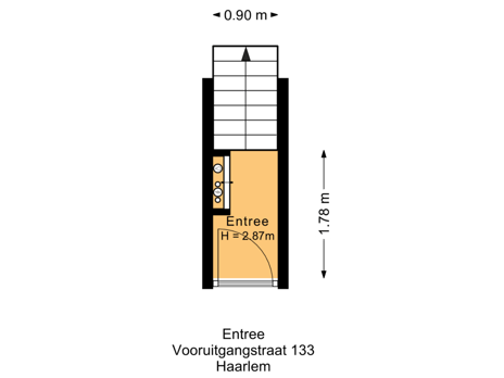 Begane grond: Eigen opgang met meterkast en trap naar de eerste verdieping.