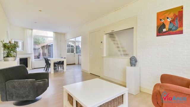 The house is located in a pleasant and quiet neighborhood on a wide street and features a spacious backyard. Thanks to the large windows, there's plenty of natural light, and at the rear, you have a lovely, typically Haarlem view of the turret of St. Jans Church. The backyard is perfect for summer evenings with friends or for starting a vegetable garden.