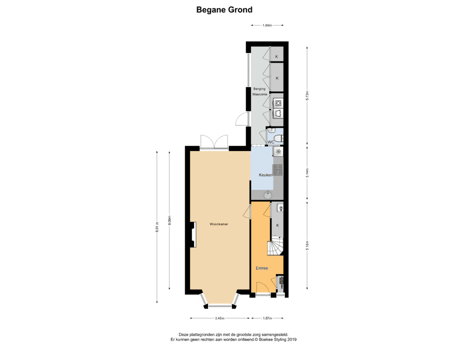 - 19 m² (5,65 meter diep en 3,45 meter breed)