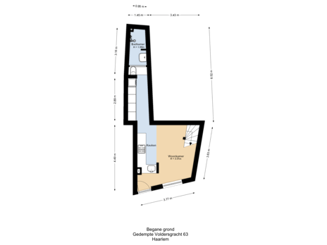 Begane grond: je komt direct de woonkamer met open keuken binnen. De ruimte is sfeervol en gezellig, met een prettige lichtinval en een fijne indeling. De keuken sluit hier mooi op aan en vormt samen met de woonkamer een uitnodigende leefruimte waar comfort en karakter samenkomen. Via de keuken kom je in de hal waar inbouwkasten en de aansluiting voor de was-/droogmachine aanwezig zijn. Vanuit de hal loop je naar de badkamer voorzien van toilet, inloopdouche en wastafel. De woonkamer heeft een opentrap naar de 1e verdieping.