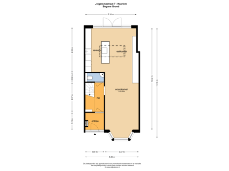 - 11 m² (2,06 meter diep en 5,33 meter breed)