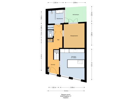 - 7 m² (2,25 meter diep en 2,99 meter breed)
