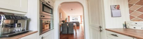 De keuken is functioneel ingericht en biedt alle ruimte om uitgebreid te koken. Of je nu snel een maaltijd op tafel wilt zetten of graag de tijd neemt voor een culinair avondje, hier heb je alles binnen handbereik. Dankzij de open verbinding met de woonkamer blijf je altijd in contact met het gezin of je gasten.