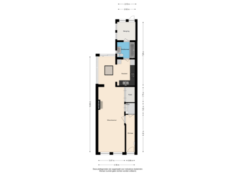 - 46 m² (9,60 meter diep en 4,78 meter breed)