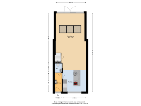- 44 m² (8,70 meter diep en 5,00 meter breed)
