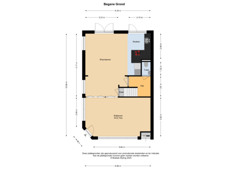 - 40 m² (5,85 meter diep en 6,89 meter breed)
