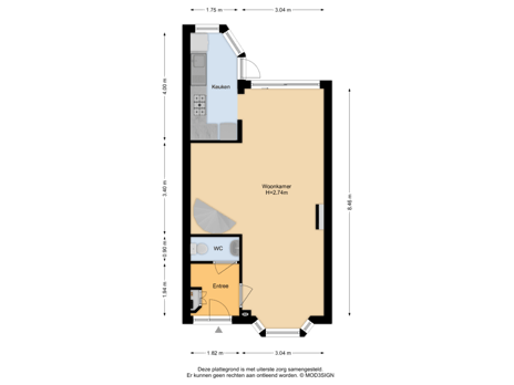 - 22 m² (3,20 meter diep en 5,19 meter breed)