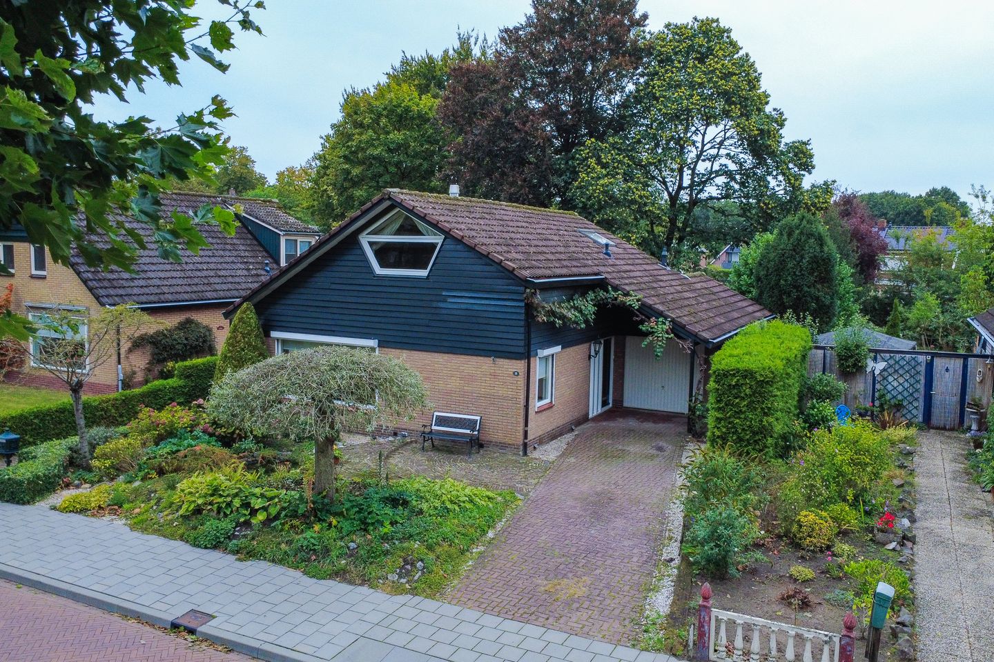De woning staat op een perceel van 348 m² en beschikt over een sfeervol aangelegde, privacy volle achtertuin met achterom. Dankzij de speelse indeling met terrassen, groen, een bruggetje en twee charmante afdakjes gedekt met Oud-Hollandse pannen, is dit een heerlijke plek om buiten te leven en te genieten van alle rust en ruimte.