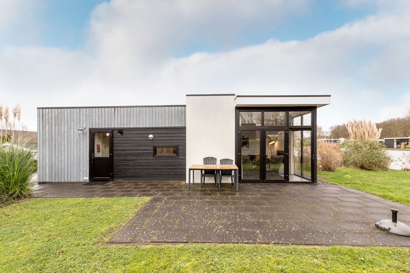 De recreatiewoning is nieuw gebouwd in 2016. Grote glaspartijen zorgen voor een moderne en luxe uitstraling. De moderne open keuken is uiteraard voorzien van inbouwapparatuur.