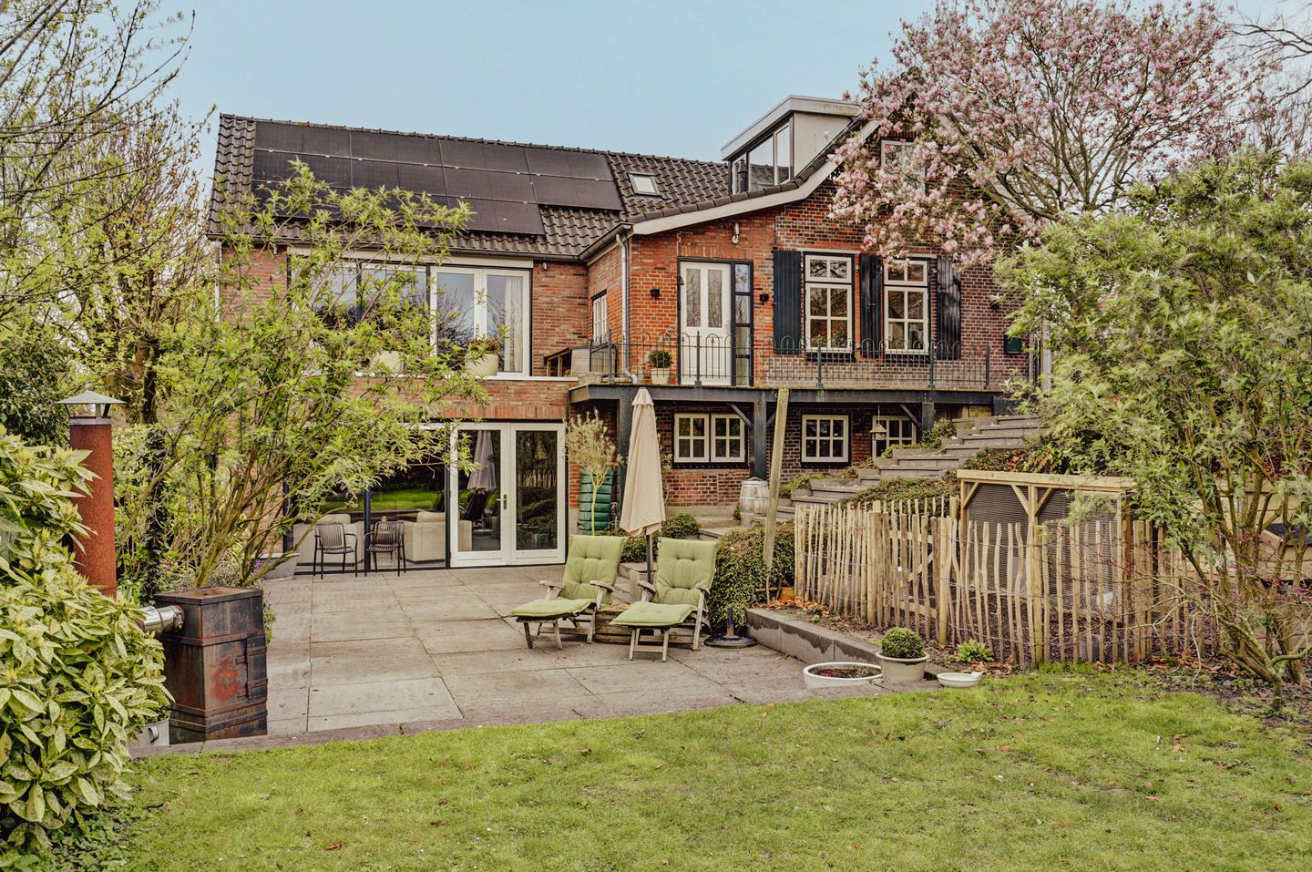 Buiten vind je een fraai aangelegde tuin met verschillende niveaus, waardoor er altijd wel een plek is om te zitten, in de zon of juist beschut. De schuur op dijkniveau biedt daarnaast extra bergruimte of mogelijkheden voor hobby of werk.