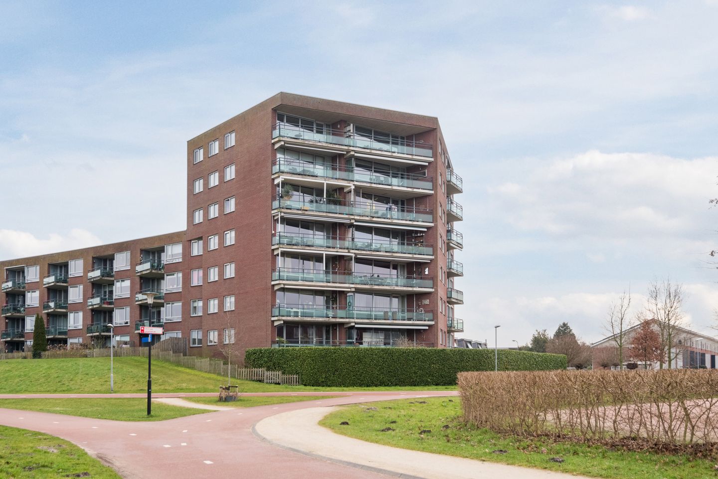 In het appartementengebouw aan de Drielandendreef mogen wij nu te koop aanbieden dit ruime 3-KAMERAPPARTEMENT met een heerlijk balkon van ca. 10 m² op de middag- en avondzon, uitkijkend over het Crescent Park en in het groen, met een eigen GARAGEBOX en ook nog een eigen (fietsen-)BERGING in de ondergelegen parkeergarage.