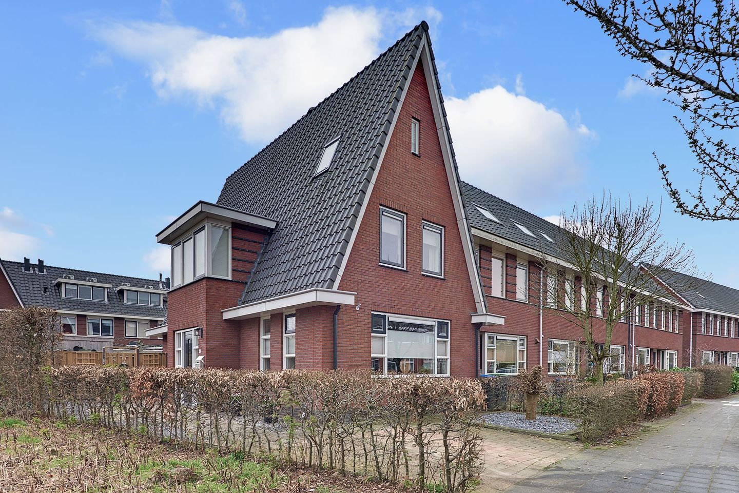 Wat deze woning extra bijzonder maakt, is de unieke ligging. De woning staat iets verder naar voren en onder een bijzondere hoek ten opzichte van de woningen aan de overzijde. Hierdoor geniet je als enige in de straat van een vrij en weids uitzicht aan de voorzijde én extra privacy en groenbeleving aan de zijkant van de woning. Een rustige en zeer privé woonomgeving.