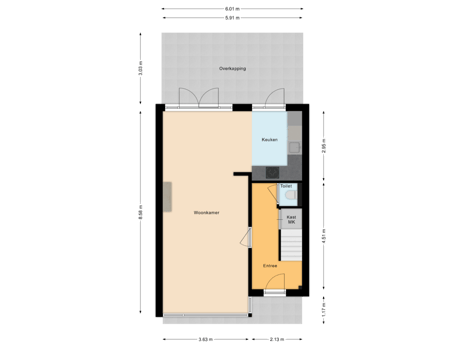 - 52 m² (9,00 meter diep en 5,75 meter breed)