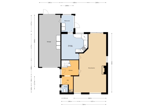 De inpandige garage is vanuit de bijkeuken binnendoor bereikbaar, wat zorgt voor extra gemak, bijvoorbeeld bij het uitladen van boodschappen.