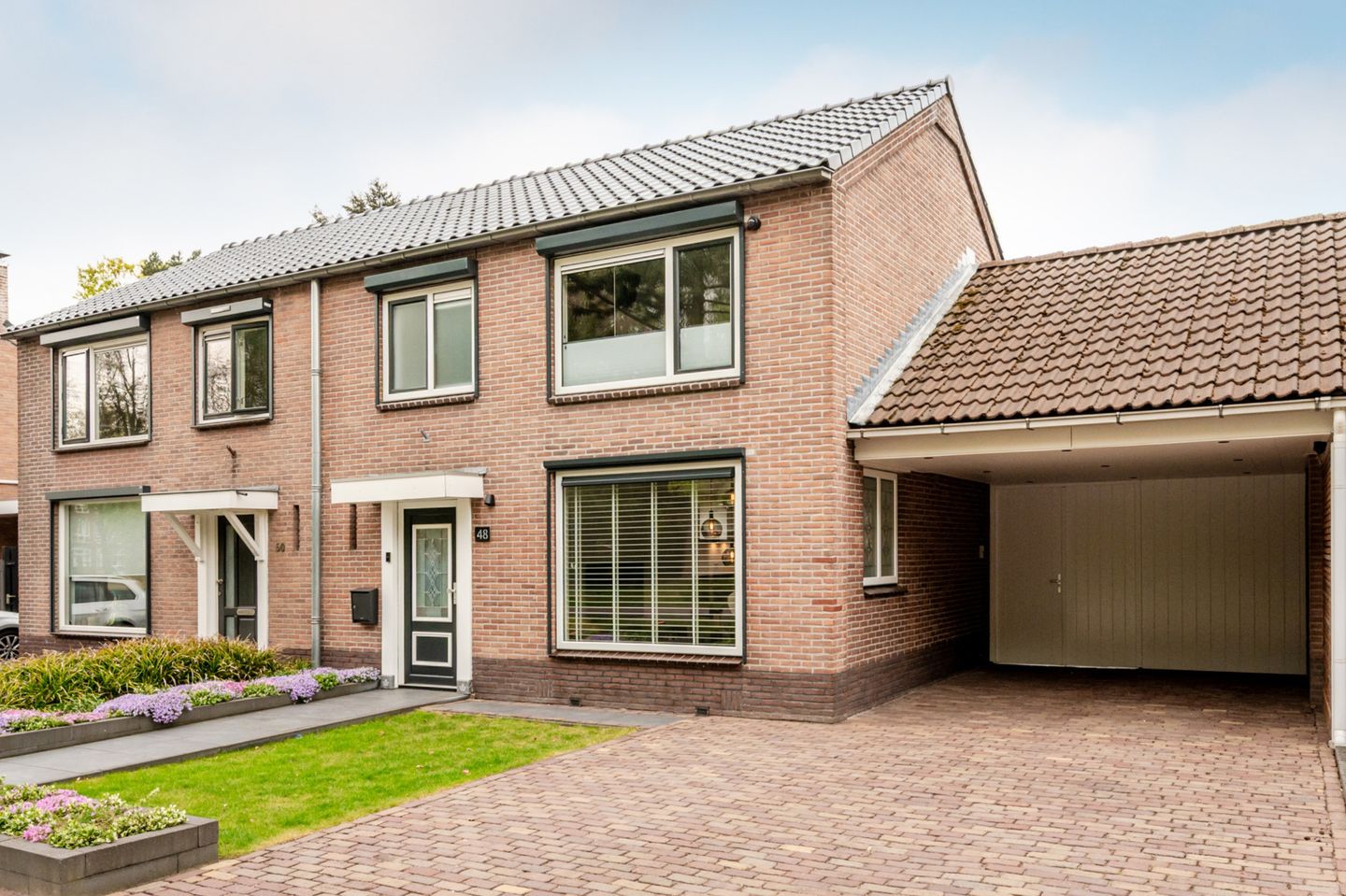 MET VEEL ZORG ONDERHOUDEN UITGEBOUWDE TWEEKAPPER MET OPRIT, CARPORT, SCHUUR EN ROYALE TUIN