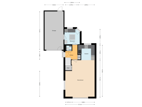 Begane grond: hal, toilet met fonteintje, meterkast, woonkamer met trapkast, open keuken met inbouwapparatuur, bijkeuken met wasmachine- en droger aansluiting met binnendoor naar de aangebouwde garage.