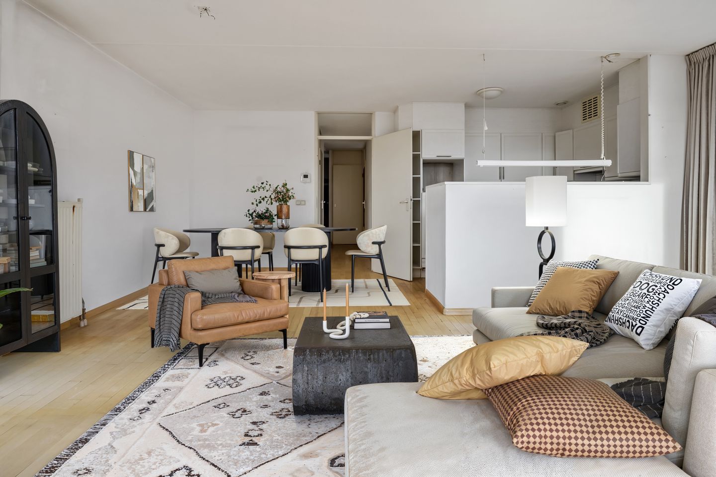 •Fijne, lichte woonkamer met halfopen keuken (samen ca. 35 m²)