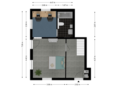 De indelingsmogelijkheden zijn eindeloos. Je kunt deze etage bijvoorbeeld inrichten als rustige slaapverdieping en het woongedeelte naar beneden plaatsen. Maar je kunt er ook een prachtige woonverdieping met een open keuken van maken.