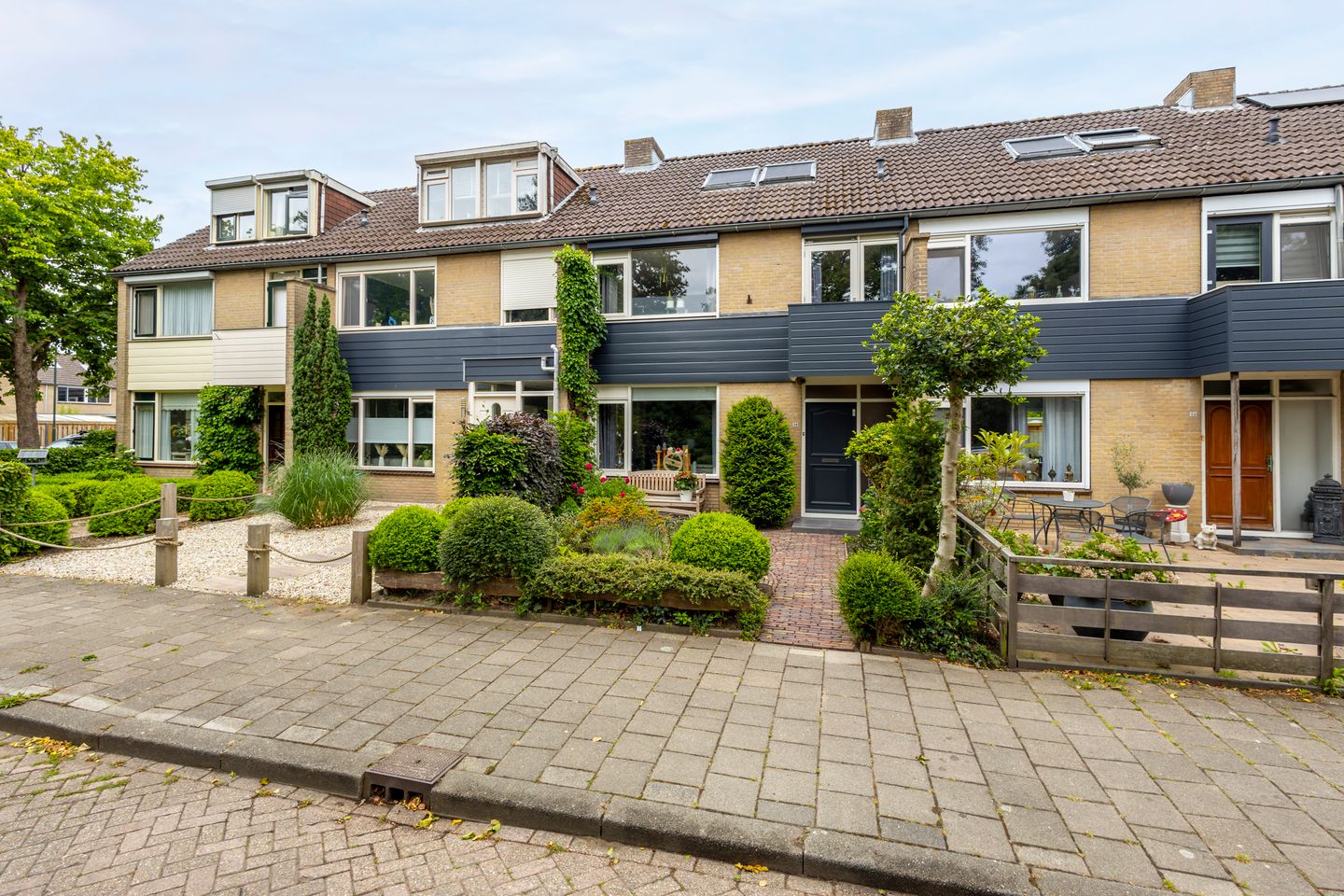 De achtertuin ligt op het westen, wat betekent dat je hier ’s middags en ’s avonds heerlijk van de zon kunt genieten. De fraaie overkapping maakt het mogelijk om ook bij minder weer buiten te zitten – of lekker lang te tafelen in de zomeravonden.