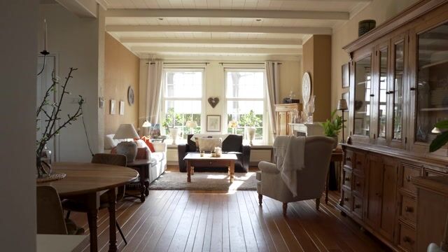 Aan de Rivierdijk 663 in Hardinxveld-Giessendam voelt elke dag als een vakantie. De woonkamer met massief eikenhouten vloer is een warm welkom. De houtkachel knispert, boeken worden verslonden en kopjes thee gedronken. De zon schijnt hier het grootste deel van de dag naar binnen en de geruite ramen zorgen voor een sfeervol lichtspel. De balken aan het plafond geven de ruimte nét dat beetje extra karakter.