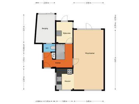 - 65 m² (10,00 meter diep en 6,50 meter breed)