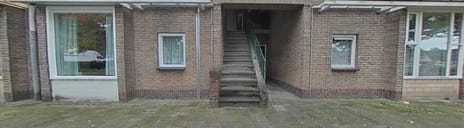 Vanaf de straat bereikt u de voordeur met een open trap en een voorgelegen bordes.