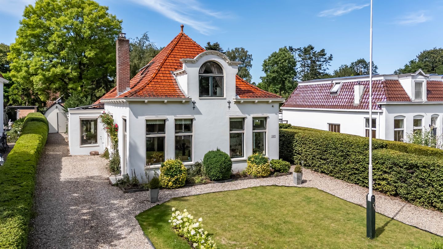 Op een markante plek aan de Rijksstraatweg omringd door eveneens huizen met een witte statuur staat deze fraaie Villa met heerlijk diepe achtertuin en een uiterst bijzondere garage – berging.