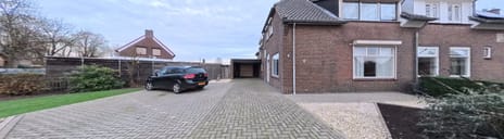 - Bij aankomst bij de woning valt direct de royale oprit met carport en de verzorgde voortuin op