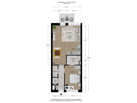Bouwnummer 14 is gelegen op de eerste verdieping van het complex. Dit bouwnummer heeft een woonoppervlakte van 55 m2 en beschikt over een balkon. Het appartement beschikt over een woonkamer met open keuken en een goed formaat slaapkamer met badkamer en suite. Indeling: Via de gezamenlijke entree en galerij bereik je de voordeur van bouwnummer 14. Binnenkomst in een hal met toilet, meterkast en berging. Tevens zijn vanuit de hal de slaapkamer en de woonkamer te bereiken. De woonkamer geeft toegang tot het balkon aan de voorzijde en beschikt over een open keuken. De slaapkamer heeft een oppervlakte van ruim 11 m2 en beschikt over een badkamer en suite. De appartementen voldoen aan de huidige duurzaamheidseisen. De appartementen zijn zeer energiezuinig door de uitstekende mate van isolatie, verwarming middels een warmtepomp en de aanwezigheid van zonnepanelen. De voorlopige berekening van het energielabel komt uit op een A+++ label. De appartementen worden opgeleverd inclusief sanitair en exclusief keuken. Iedere eigenaar wordt automatisch lid van de Vereniging van Eigenaars en dient hiervoor maandelijkse servicekosten te voldoen. Informatie over de locatie: De Lochemseweg 134 – 136 betreft een herontwikkelingslocatie, gelegen op de hoek van de Lochemseweg en de Reeverweg, direct gelegen aan het gezellige marktplein met onder andere een wekelijkse markt op dinsdagmiddag. De huidige bebouwing wordt gesloopt en maakt plaats voor 19 appartementen in zowel de koop- als de huursector en een commerciële ruimte. De appartementen zijn verdeeld over drie woonlagen en variëren in grootte van 48 m2 tot 89 m2. Alle appartementen beschikken over een buitenruimte, een berging en een eigen parkeerplaats op het achterliggende terrein. Het complex beschikt over een trappenhuis en een liftinstallatie.