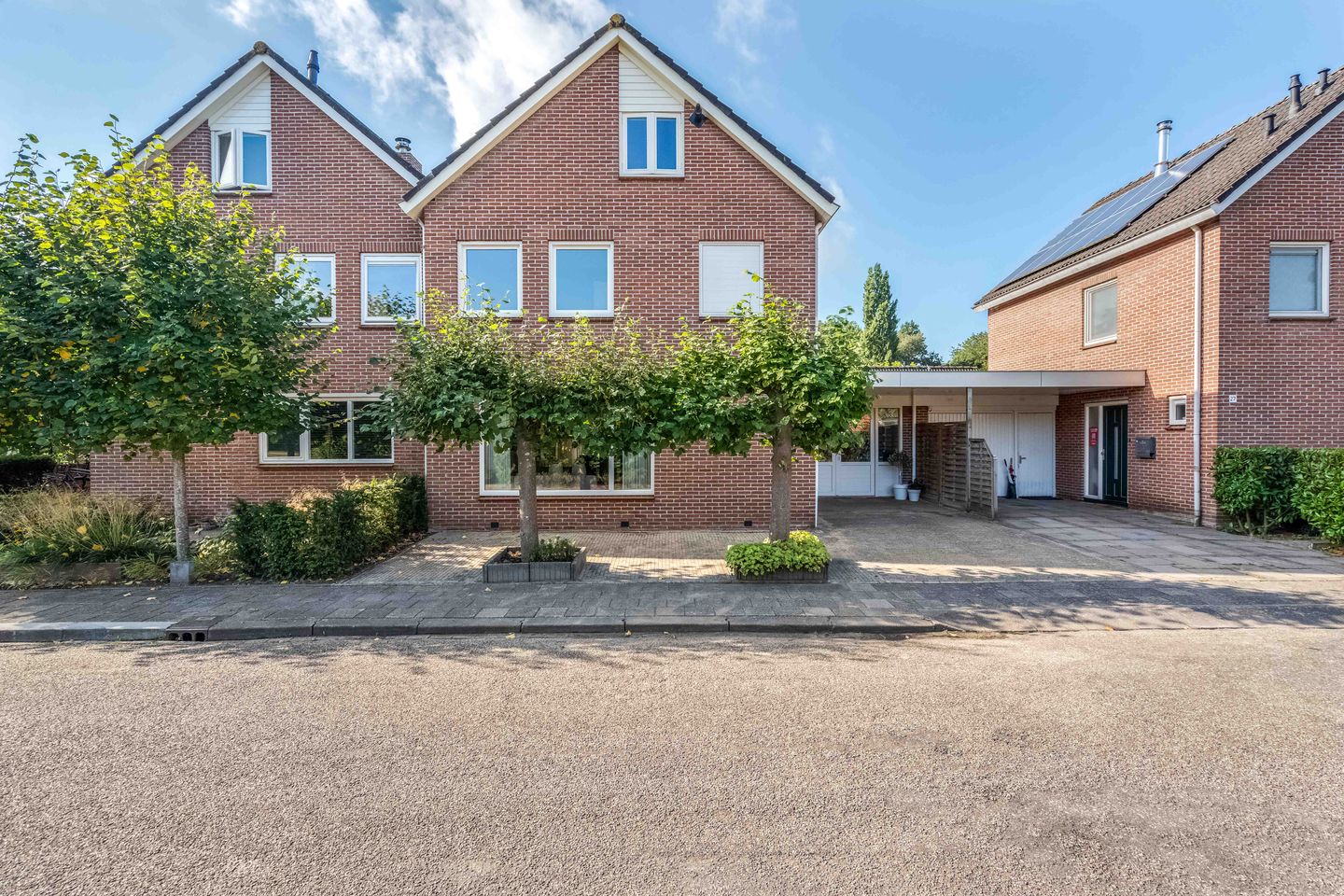 De voortuin is eveneens verzorgd aangelegd en biedt samen met de oprit ruimte voor parkeergelegenheid op eigen terrein.