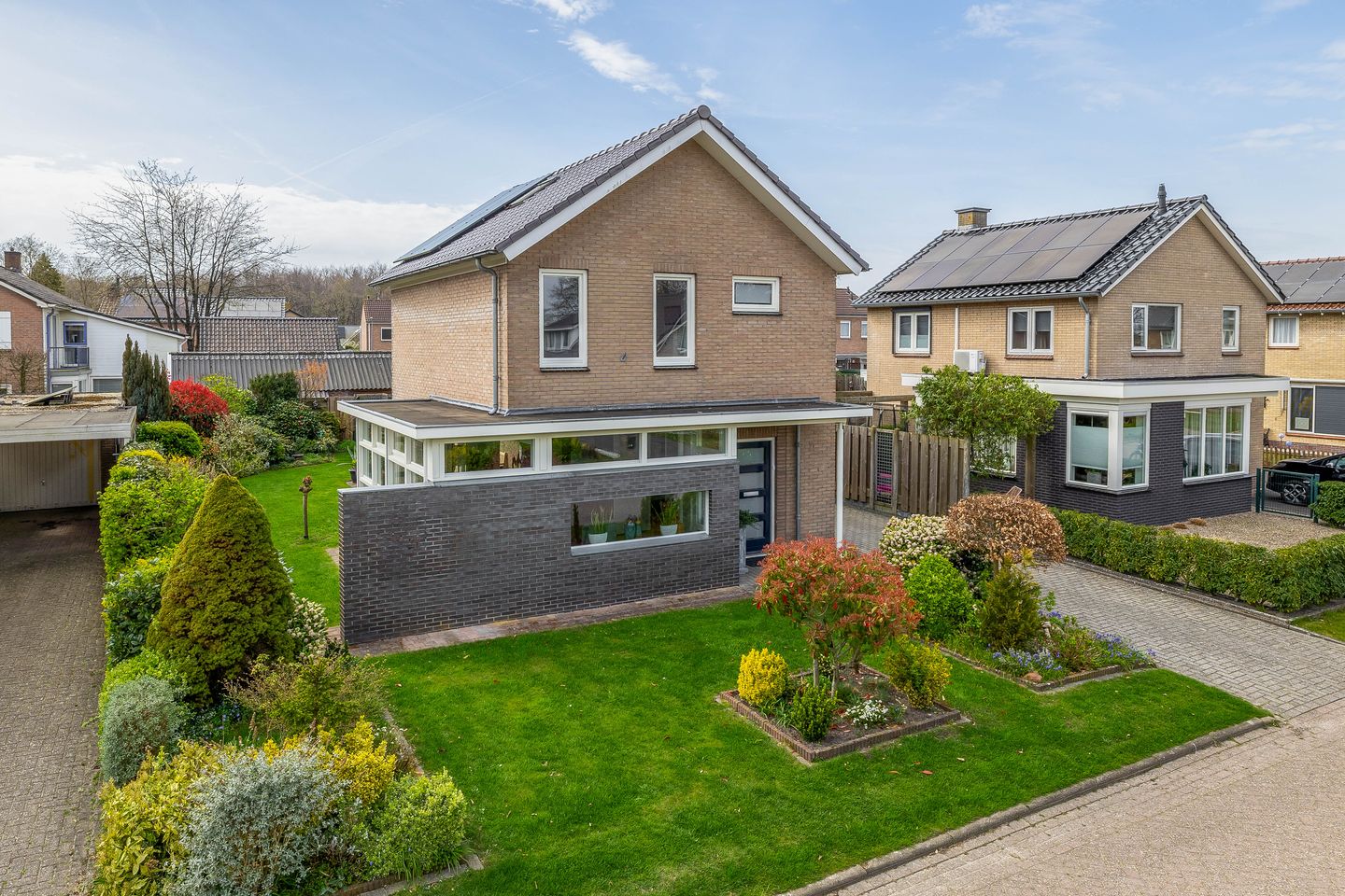 Je komt binnen aan de voorzijde in een entree met toilet met fonteintje, de trapopgang naar de eerste verdieping, de meterkast en garderobe en toegang tot de woonkamer. Deze is in 2004 uitgebouwd met een serre aan de zijkant en een speelse voorgevel. Door de vele raampartijen, voorzien van screens in de serre, is het een fijne lichte ruimte met een nette parketvloer en airco. De eethoek aan de achterzijde biedt, door de 2 ramen een mooi zicht op de achtertuin. Aangrenzend is de halfopen keuken met ook hier weer 2 ramen voor een prettig lichtinval op het werkblad. Het keukenblok in een lichte kleurstelling, heeft een marmeren keukenblad, veel bergruimte en is voorzien van diverse inbouwapparatuur zoals een vaatwasser, combi magnetron/oven, koelkast, inductiekookplaat en een Quooker. Verder vind je hier nog een kelder. Vanuit de keuken kom je in de bijkeuken met witgoedaansluiting, klein keukenblokje, voldoende bergruimte en enerzijds een deur naar het terras achter en anderzijds een deur naar de garage. De ruime garage heeft aan opritzijde zowel een sectionale garagedeur met afstandsbediening, als een loopdeur. Er is, naast een auto, nog ruimte voor een werkblad, de ramen zorgen voor daglicht, en er is een deur naar een overkapt gedeelte in de achtertuin.