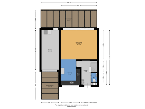 - 68 m² (8,00 meter diep en 8,50 meter breed)