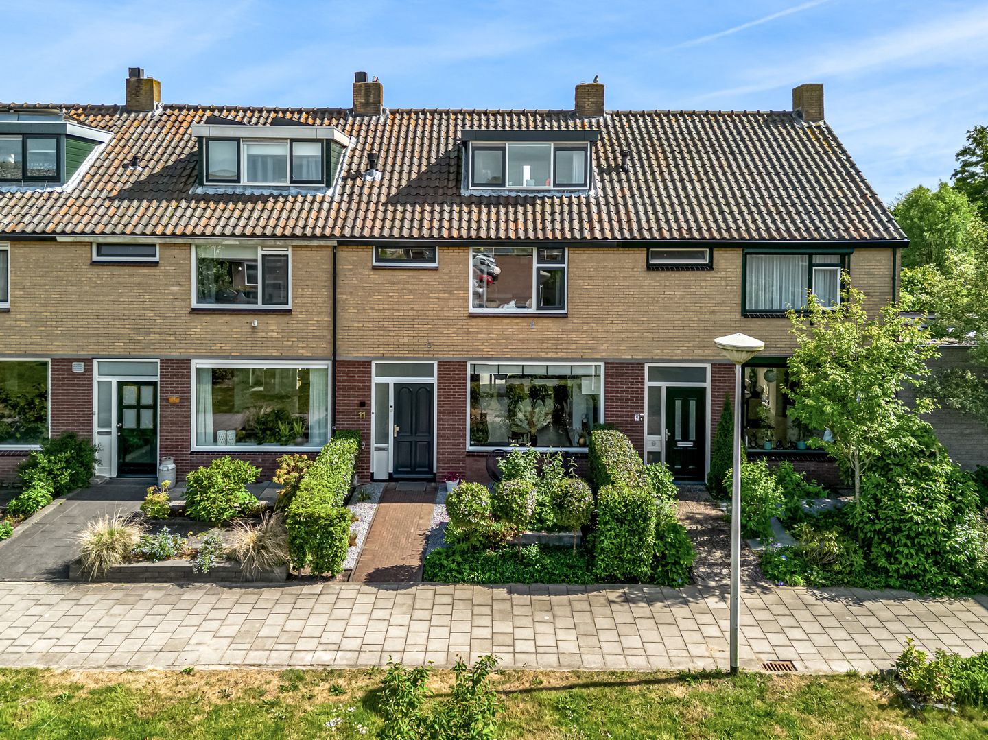 De moderne, witte L-vormige keuken ligt aan de achterzijde en is van alle gemakken voorzien, zoals een inductiekookplaat, combi-oven, een vaatwasser, koelkast en een afzuigkap, fraai weggewerkt in het ontwerp. De keuken biedt royale opbergruimte door de vele kasten. Vanuit de keuken is er eveneens direct toegang tot de achtertuin. En de tuin? Die is fraai aangelegd met een mix van grote tegels, een stukje groen gazon en borders met beplanting. Dankzij de gunstige zonligging is het hier van 's ochtends vroeg tot in de avond genieten van buiten in alle rust en privacy. Een achterom maakt het geheel praktisch en in de stenen berging is volop ruimte voor fietsen, tuingereedschap of buitenkussens. Achter de tuin is een fietspad dat grenst aan water met een brede groene oever en volwassen bomen. Geen directe achterburen dus en een extra verlengstuk van de tuin.
