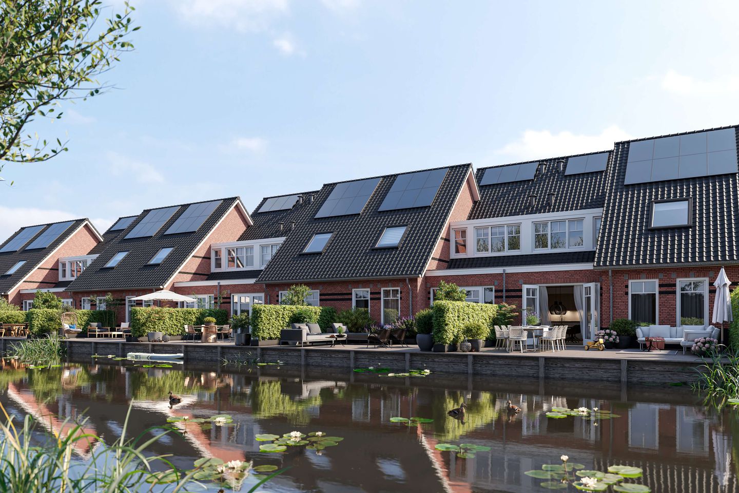Deze vlonderwoningen hebben een breedtemaat (binnen!) van maar liefst 7,80 meter en een diepte van meer dan 15,50 meter! De woningen zijn allen voorzien van een vlonder over de gehele breedte van de tuin en hebben een erfafscheiding in de vorm van een hekwerk met haag om het landelijk beeld te versterken. Dit werkt samen met het open karakter van het plan waarin water, lanen en velden de leidraad zijn.
