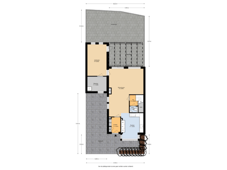 - 70 m² (7,65 meter diep en 9,14 meter breed)