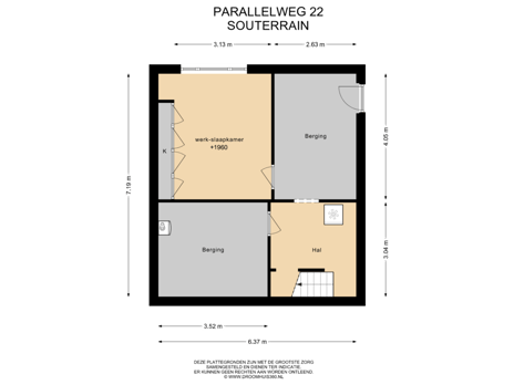 Het royale souterrain, dat onder de gehele woning ligt en zowel via de keuken als via een eigen entree vanaf de oprit bereikbaar is, bied legio aan mogelijkheden: van praktijk aan huis tot extra slaapkamer of hobbyruimte. Deze multifunctionele ruimte is nu in gebruik als bergruimte en biedt plek aan de cv-opstelling (in 2016 vervangen door een HR combi-ketel).