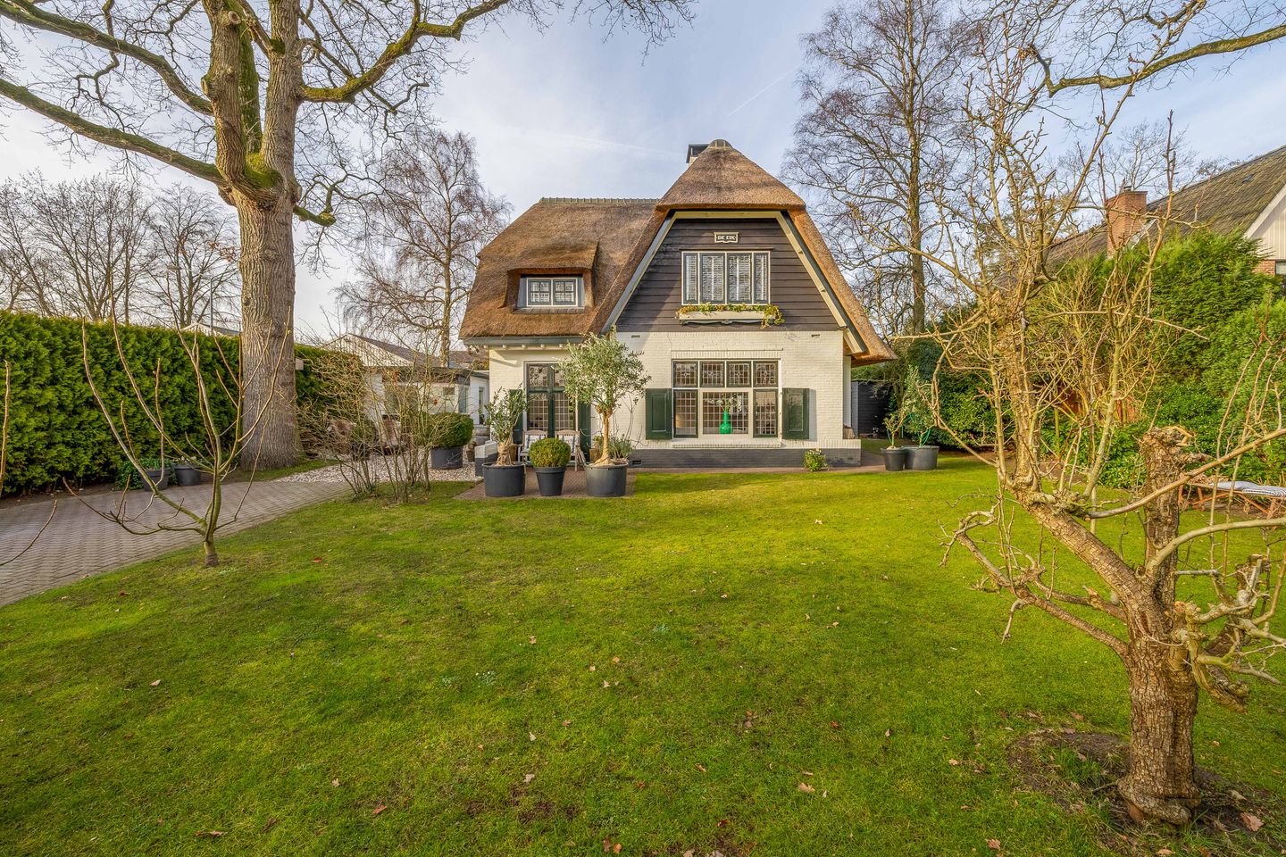 - Verzorgde tuin rondom met gazons, diverse terrassen en een vijverpartij;