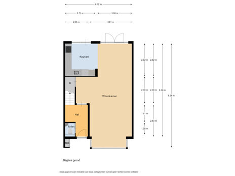 - 59 m² (9,60 meter diep en 6,10 meter breed)