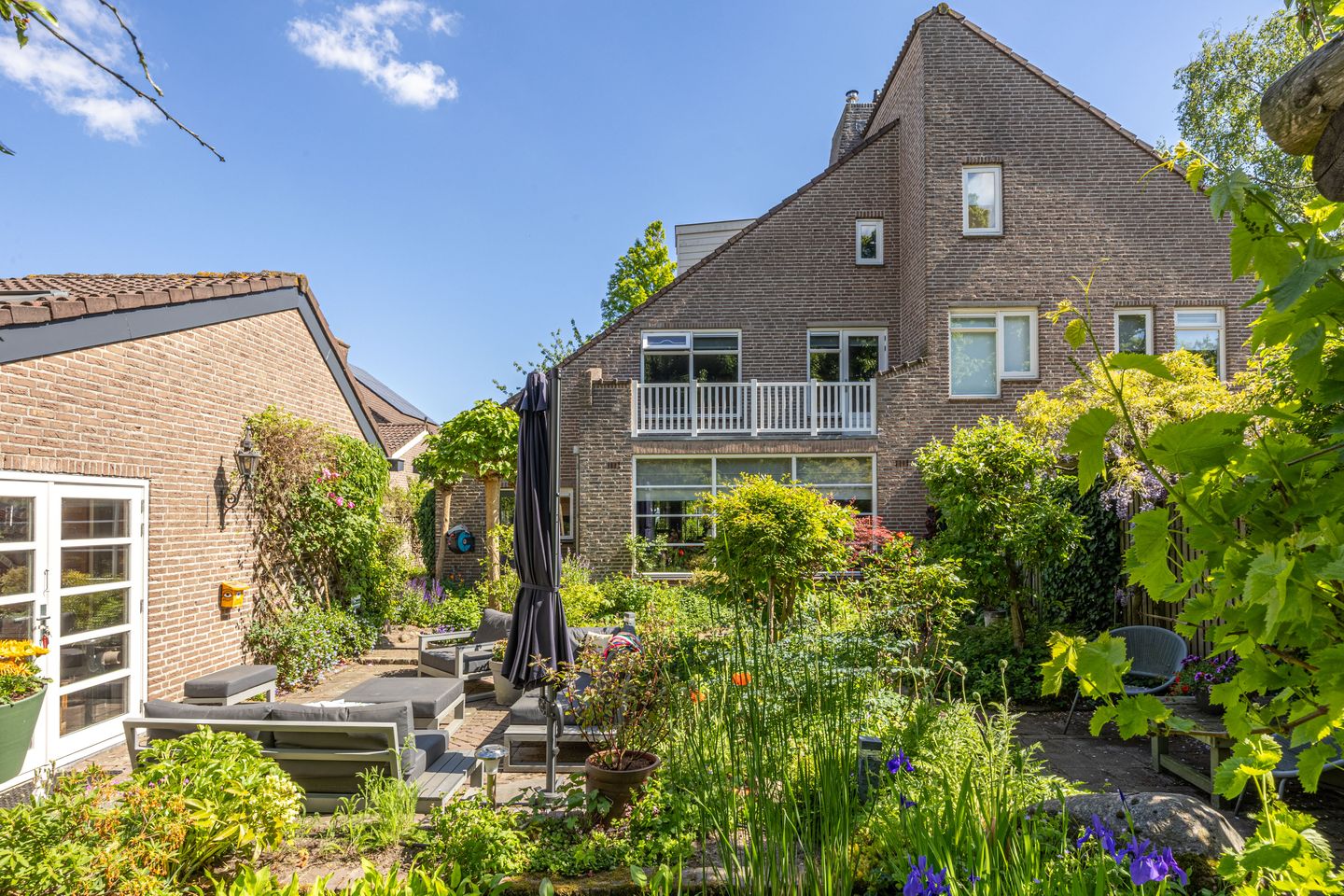 Via de keuken stap je direct de heerlijke, groene achtertuin in, waar rust en privacy centraal staan. De oorspronkelijke grote vrijstaande garage is deels omgetoverd tot een ruime berging en een fraai tuinhuis. Het tuinhuis biedt een fijne plek om ook op minder zonnige dagen te genieten van de omgeving.