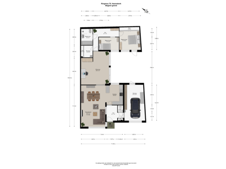 De woonkamer is met een fraaie schuifdeur op te delen in twee afzonderlijke ruimtes. Hierdoor is het eenvoudig mogelijk om hier een derde slaapkamer of een werk/hobbyruimte te realiseren. Vanuit deze ruimte geeft een schuifpui toegang tot de patio, waar u in alle rust en privacy van de zon kunt genieten.
