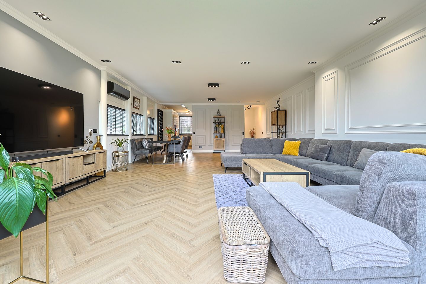entree/hal met meterkast, toiletruimte voorzien van wandcloset en fonteintje en vloerverwarming, lichte tuingerichte woonkamer voorzien van een visgraat vloer, glad gestucte wanden met sierlijsten, airco-systeem voor verwarming en koeling, grote zijramen en openslaande deuren naar achtertuin, trapkast, lichte open keuken (in u opstelling) voorzien van een grote spoelbak met Quooker, inductiekookplaat met ingebouwde afzuiging, koel/vries combi en koffiezetapparaat. Alle inbouwapparatuur is van Miele.