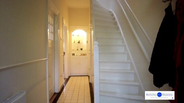 Entree in een sfeervolle hal met lambrisering, trapkast en modern toilet. De kamer en suite met royale uitbouw (HR++ glas) biedt een lichte, ruime living met vloerverwarming, glas-in-lood, houtkachel, marmeren schouw en merbauparket. Aan de achterzijde ligt de halfopen keuken met granieten werkblad, veel bergruimte en complete inbouwapparatuur (o.a. inductie, vaatwasser, combi-oven, koel-/vriescombi).