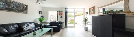De lichte woonkamer vormt het hart van het huis. Grote ramen zorgen voor een prettige lichtinval en een fijne verbinding met de zonnige (onderhoudsarme) achtertuin. Er is voldoende ruimte voor een royale zithoek en een eettafel, perfect voor gezellige momenten met familie of vrienden. De nette afwerking en de strakke uitstraling maken het geheel helemaal af.