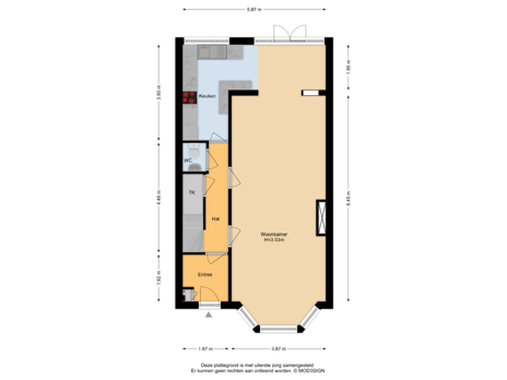 - 165 m² (31,00 meter diep en 5,87 meter breed)