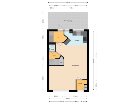 - 55 m² (10,00 meter diep en 5,50 meter breed)