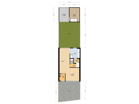 - 33 m² (6,00 meter diep en 5,50 meter breed)