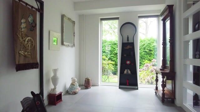 Bij binnenkomst betreedt u de ruime vestibule met toegang tot het toilet en de meterkast. Vervolgens komt u in de open leefruimte, waar de woonkamer, eetkamer en halfopen keuken samenkomen. De centrale trap zorgt voor een speelse indeling en biedt tal van mogelijkheden. De woonkamer was voorheen een aparte ruimte, maar is nu open en licht, met ramen tot aan de grond en een schuifpui naar de tuin. Ook de eetkamer heeft een schuifpui die toegang geeft tot de tuin.